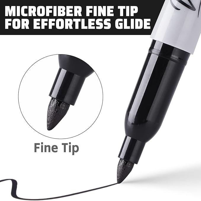 VEESA Permanent Markers - Fine Tip, 36 Pack Black Permanent Marker Pens for Office, School & Home, Waterproof, Smear-Proof, Quick-Drying