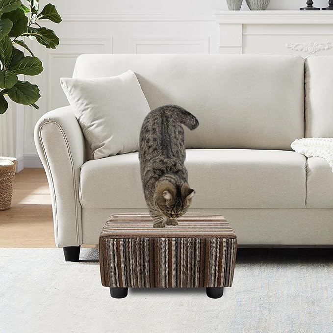 CAROLMADE Small Foot Stool Ottoman Footstool with Legs Under Desk Footrest for Living Room Bedroom and Office,Linen-Stripe Brown