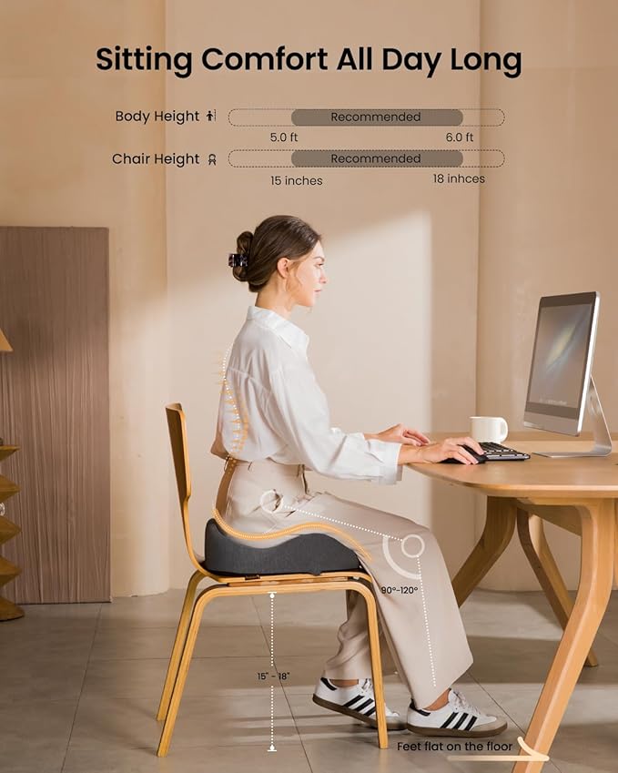 - Pressure Relief Seat Cushion: Split design targets pressure points on hips, thighs, coccyx for relief from lower back, hip discomfort, promoting proper posture. Ideal for long hours seated, offers relief from back and hip