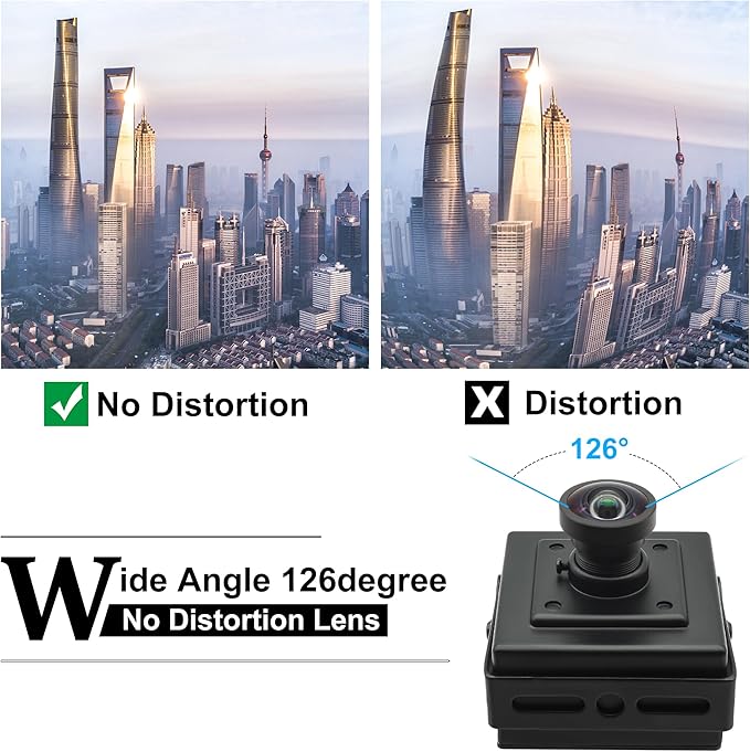 - Wide Angle 120degree No Distortion Lens, HFOV about 126degree, mini 38mmx38mm camera board can be installed in most hidden and narrow position, can be used in any video system for personal or industrial.