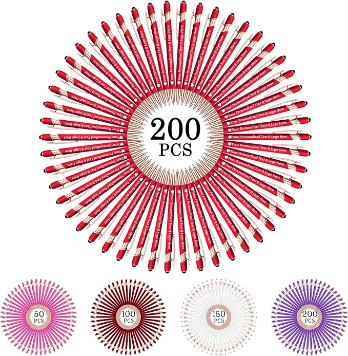 STREADVE 200 Personalized Custom Pens Engraved Writing Pen with Name Logo, Customized Promotional Items Stylus Pen Gifts for Women Realtor Reunion Wedding Business, Red