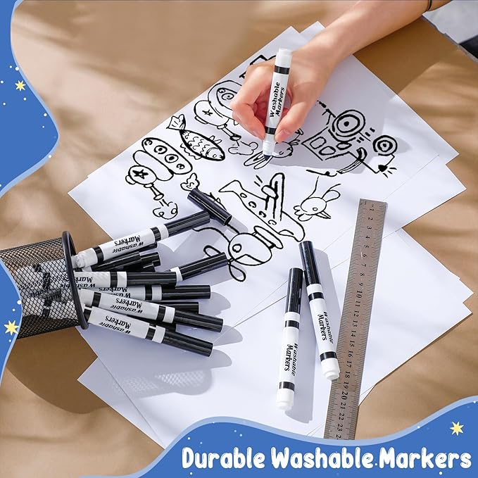 - Versatile Conical Tip Design: the tip of these washable markers adopts a conical design, ideal for coloring empty areas with the sides, and also for drawing thin lines or dots; This can help children fully demonstrate their imagination and creativity