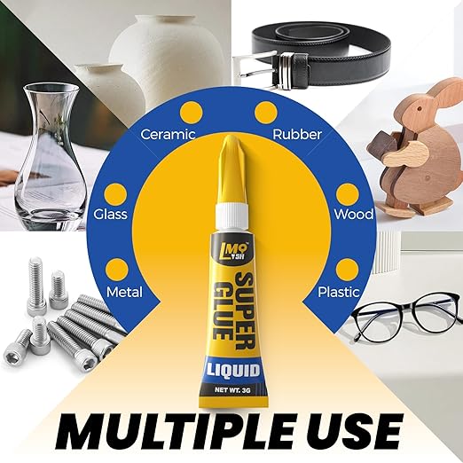 - 🛠️ Quick Fixes for Household Repairs: Designed for small household fixes, this super glue bonds effortlessly to ceramic, glass, wood, plastic, and more. Perfect for repairing broken items and restoring them to their original glory with ease.