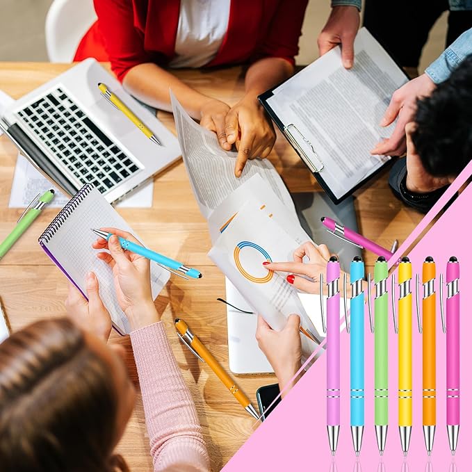 Tenare 12 Pieces 2 in 1 Stylus Metal Ballpoint Pen with Stylus Tip, 1.0 mm Black Ink Ballpoint Pen for Touch Screens(Light Color)