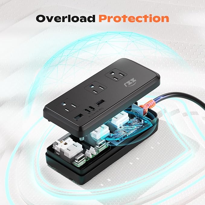 - 7-in-1 Power Strip :Features 3 AC outlets, 2 USB-C port, and 2 USB-A ports to give you everything you need to power up all of your appliances and mobile devices.USB-C: 5V 3.1A (15.5W max) USB-A: 5V 3.1A (2.4A max per port); 2 USB-A ports and 2 USB-C port share 5V 3.1A. product weight 683g