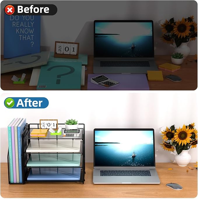 - 【Space Saving】The desk organizer makes full use of the vertical space of the desktop to create the maximum storage space, helping you quickly distinguish between files and items in each compartment, making the access to items more efficient.