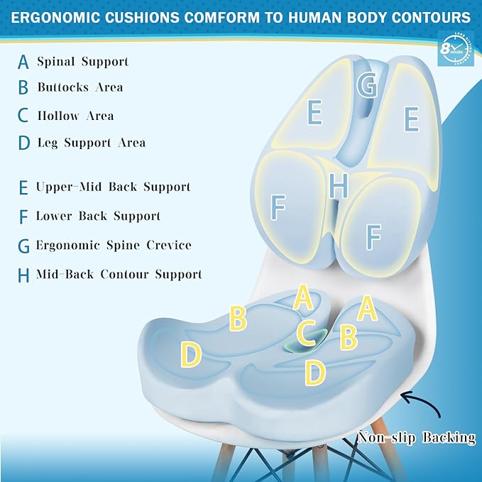 - đ ăVersatile & PortableăOur Seat Cushion & Lumbar Pillow Combo is ideal for long office hours, helps reducing fatigue and enhance work efficiency. The chair pillows are also suitable for traveling by car or airplane, playing video games at home, or fixing to a wheelchair for a more comfortable sitting experience. Our cushions are essential for anyone seeking extra support and padding in their chair. An ideal birthday or holiday gift for friends, workmates, parents, grandparent, and teenagers.