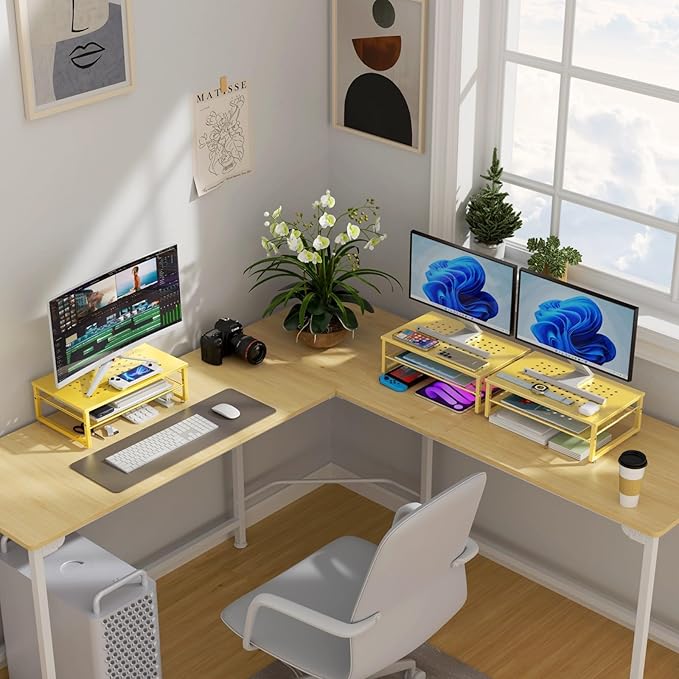 - 【Practical and Stylish】 The laptop stand has a simple yet sophisticated dual-layer design, providing ample space to store various office supplies, keeping your desk tidy. This allows you to work more efficiently in a comfortable and organized environment.