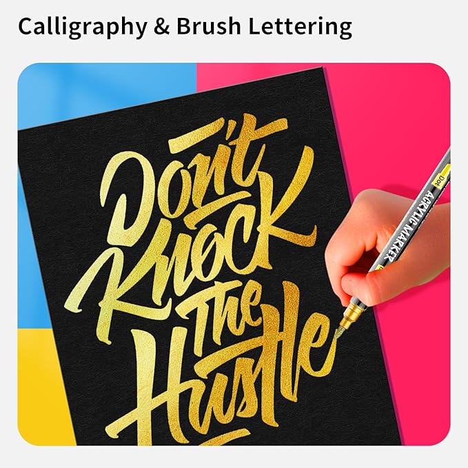 - PREMIUM QUALITY: This gold-pack of paint pens features high-quality acrylic paint and a durable nib that dries opaque, so you don’t have to make a second layer! The gold permanent paint marker is acid-free, waterproof and wear resistant. It’s a great tool for art projects, DIY crafts, coloring, greeting cards, poster making, painting, highlighting.