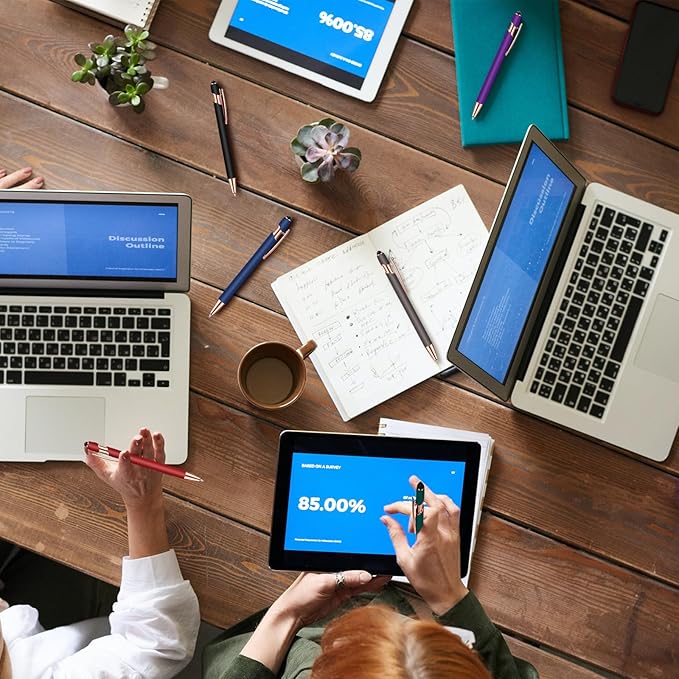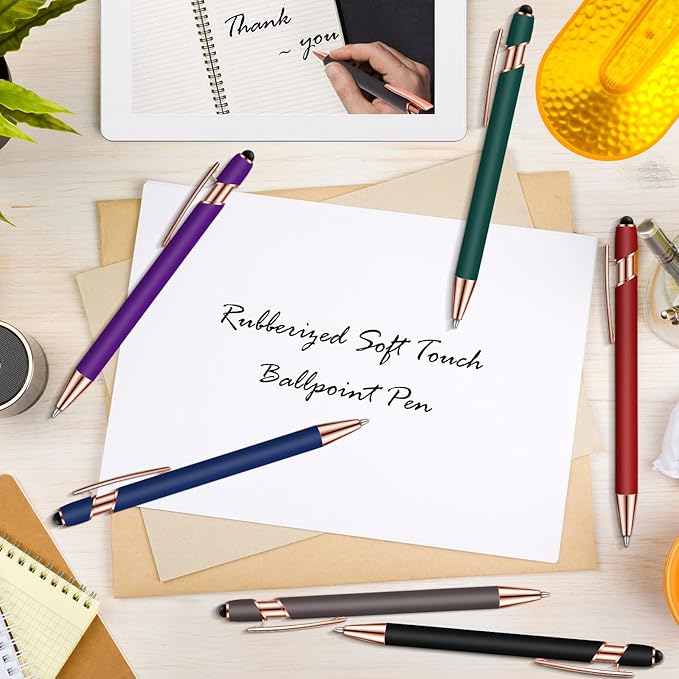 Tenare 12 Pieces 2 in 1 Stylus Metal Ballpoint Pen with Stylus Tip, 1.0 mm Black Ink Ballpoint Pen for Touch Screens(Dark Colors and Rose Gold)