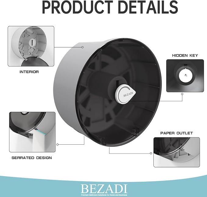 - 【Toilet Paper Dispenser】Made of durable ABS, equipped with 1x key for more security.