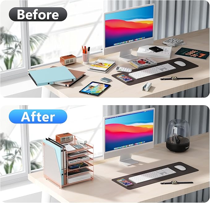 - 【Make the most of your space】This desktop organizer adopts a vertical storage method, which not only saves desktop space but also expands your storage capacity, keeping your desktop tidy and organized.