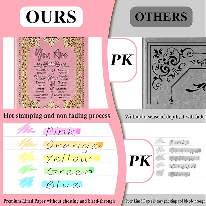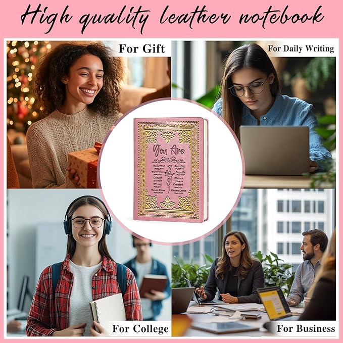 Pink A5 Lined Leather Journal Notebook,Inspirational Christian Gifts Hardcover Executive Notebooks for Men Women,200 Pages 100 Gsm Thick Ruled Paper Daily Diary for School,Family ,Friends,Work (You Beautiful Pink)