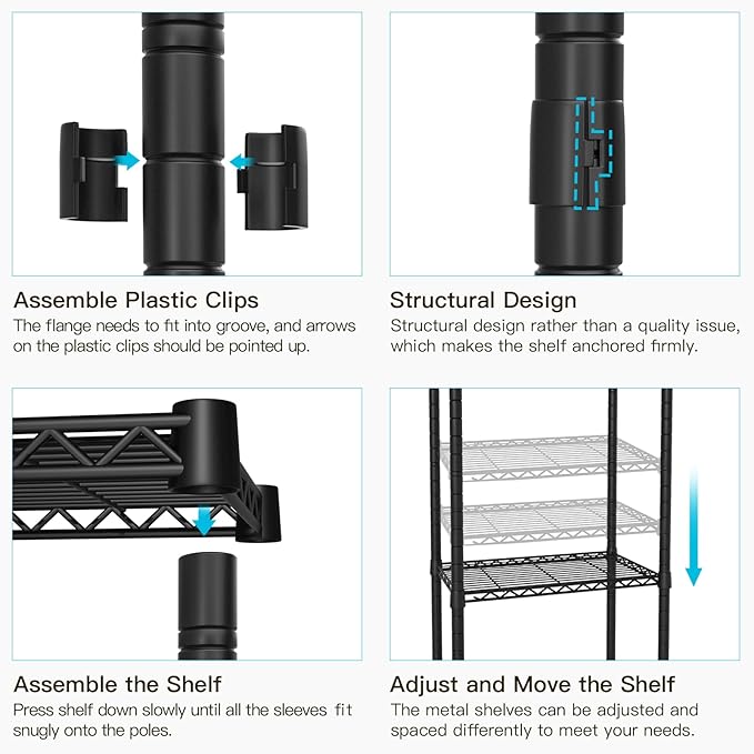 - [Easy to Assemble]: A rubber hammer (NOT INCLUDED) is recommended to gently hit the shelves to make them more compact. Easy assembly, no other tools are needed