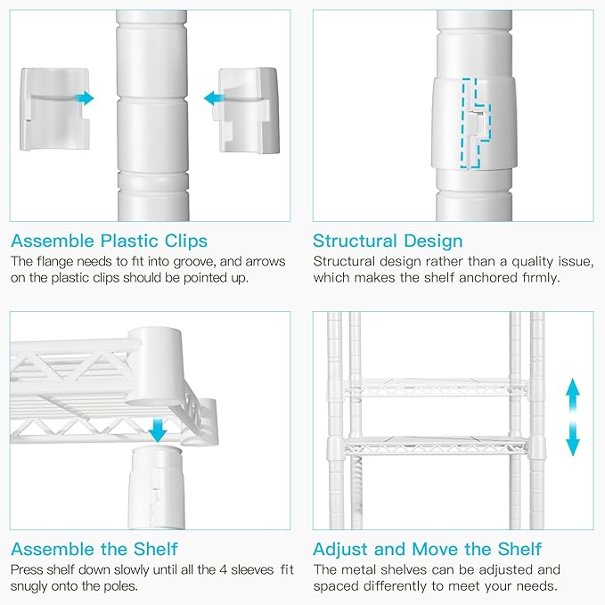 - [Easy to Assemble]: A rubber hammer (NOT INCLUDED) is recommended to gently hit the shelves to make them more compact. Easy assembly, no other tools are needed