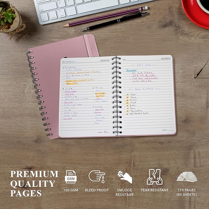 - ORGANIZED AND FUNCTIONAL - These spiral a5 notebook lined include two content pages to help you organize your notes efficiently. Whether you need a writing journal for your wildest stories or a spiral notepad for daily tasks, this note book is there for everything, a perfect gift for friends and family.