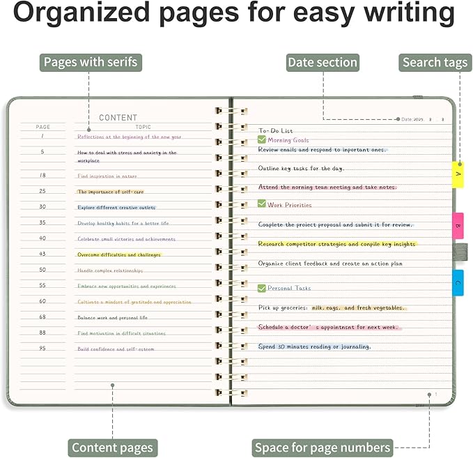 - ORGANIZED AND PRACTICAL NOTEBOOK: Our lined spiral notebook features 140 numbered pages and 4-page blank table of contents. In a large B5 size 7.6" × 10", providing ample writing space while remaining lightweight and easy to carry