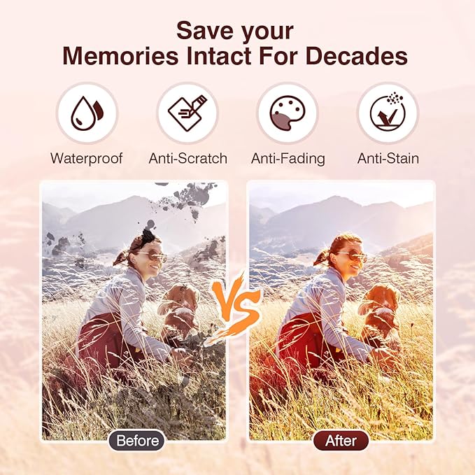 - Wide Application and Superior Protection: Supporting laminating widths up to 230mm (A4) and thicknesses up to 0.5mm, it effectively protects documents, photos, cards, and artwork while enhancing color quality. It is suitable for the long-term preservation of various documents and images (such as training materials, legal documents, posters, photos, menus, postcards, bookmarks, labels, and children's artwork).