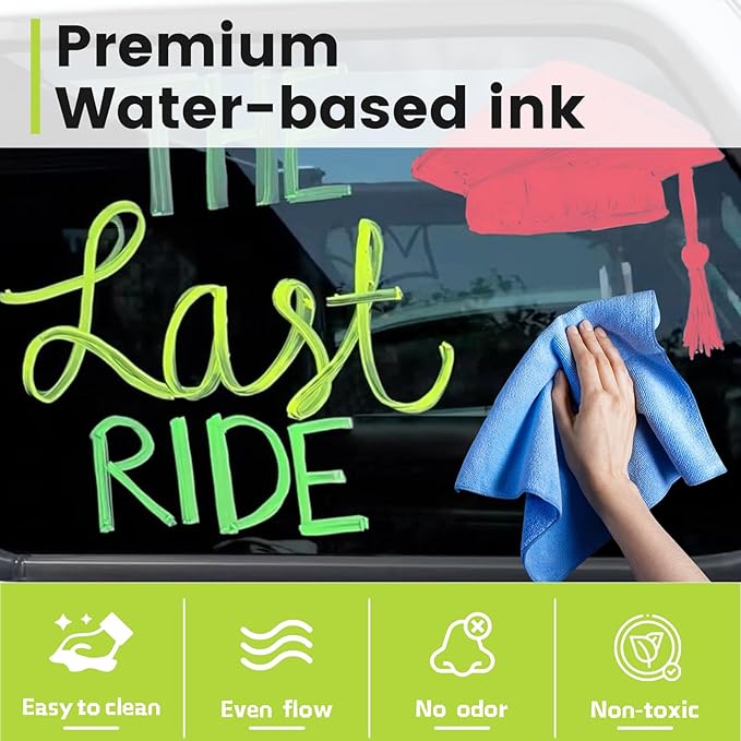 - EASY TO USE & CLEAN: Our liquid chalk markers erasable are designed for effortless application and clean-up. To use, simply put the cap back on, shake the marker thoroughly, press the tip to saturate it with ink, and test it on paper. Erasing is equally straightforward, as our dry & wet erase markers wipe clean with a dry or damp cloth, leaving no residue.