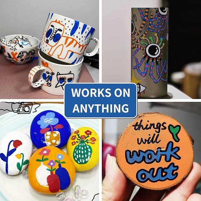- Quick-Drying: Featuring quick-drying oil-based ink that resists water, fading and abrasion. The oil based paint pens is glossy. For Instant gratification: Get your projects completed in record time with our quick-drying markers, Drying time 45 - 60 seconds