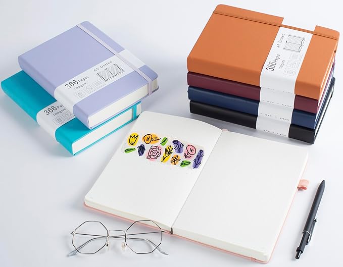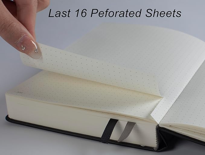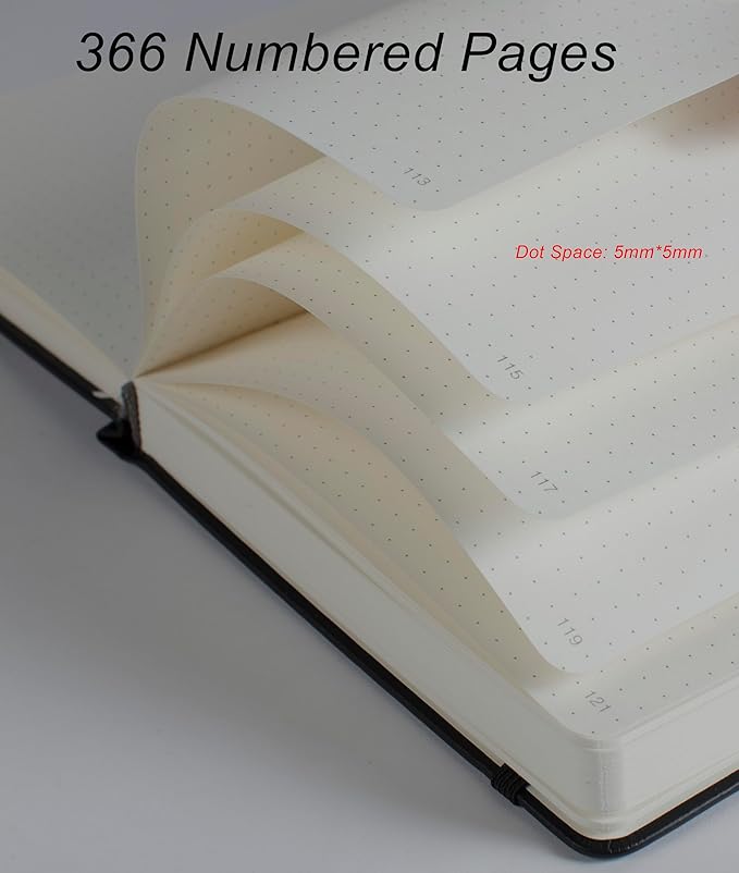- Comfortable Writing: Light Ivory paper to protect your eyes. 100gsm weight paper is thicker than normal, suitable for fountain pens, ballpoint pens, highlighters to write on both sides of page without bleeding through, smearing or ghosting. Dot spacing is 5x5mm and 180°lay flat to give you comfortable writing experience.