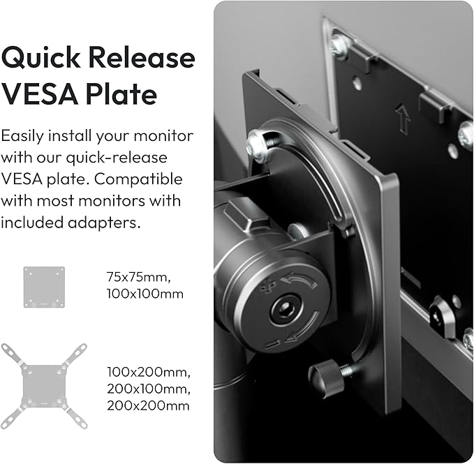 - UNIVERSAL COMPATIBILITY - VESA mount standard fits most monitors for a secure fit (75X75mm, 100x100mm, 100x200mm, 200x100mm, 200x200mm)