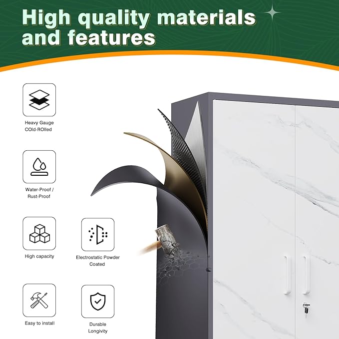 - Superior Materials : Our wardrobe is constructed from large thickened cold-rolled steel plates for exceptional strength and durability. The wardrobe is finished with an electrostatic powder coating, making it scratch resistant, wear resistant and easy to clean. This design is more durable than traditional wooden wardrobes.