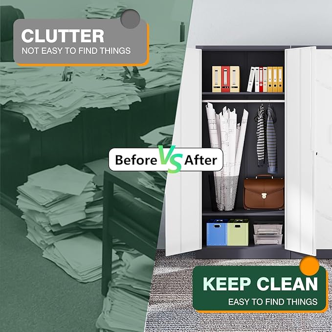- Spacious and Flexible Storage:72"H×36"W×18"D. This tall wardrobe has a large interior with a dedicated hanging rod area and adjustable shelves. The large storage capacity allows you to organise clothes, accessories, office supplies and more, increasing the functionality and flexibility of your space.