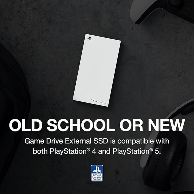 Seagate Game Drive for PS5 External SSD 2TB Solid State Drive - USB 3.2 Officially Licensed White with Blue LED Lighting (STMH2000100)