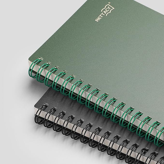 - STURDY DOUBLE-WIRE SPIRAL BINDING: RETTACY Pocket Notebook feature a sturdy double-wire binding, easy page turning as well as the ability to lay flat at 180°. The cover is made of plastic which is waterproof and provides protection for your valuable notes