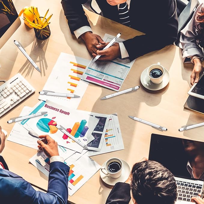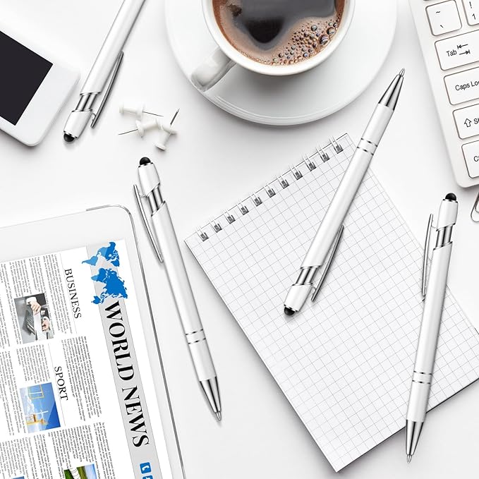Tenare 12 Pieces 2 in 1 Stylus Metal Ballpoint Pen with Stylus Tip, 1.0 mm Black Ink Ballpoint Pen for Touch Screens(White)