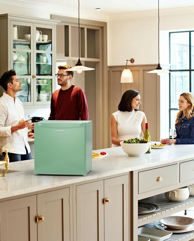 Upstreman 1.7 Cu.ft Mini Fridge with Freezer, Dorm Essentials, Adjustable Thermostat, Energy Saving, Low Noise, Single Door Compact Refrigerator for Dorm, Office, Bedroom, Mint Green-FR17