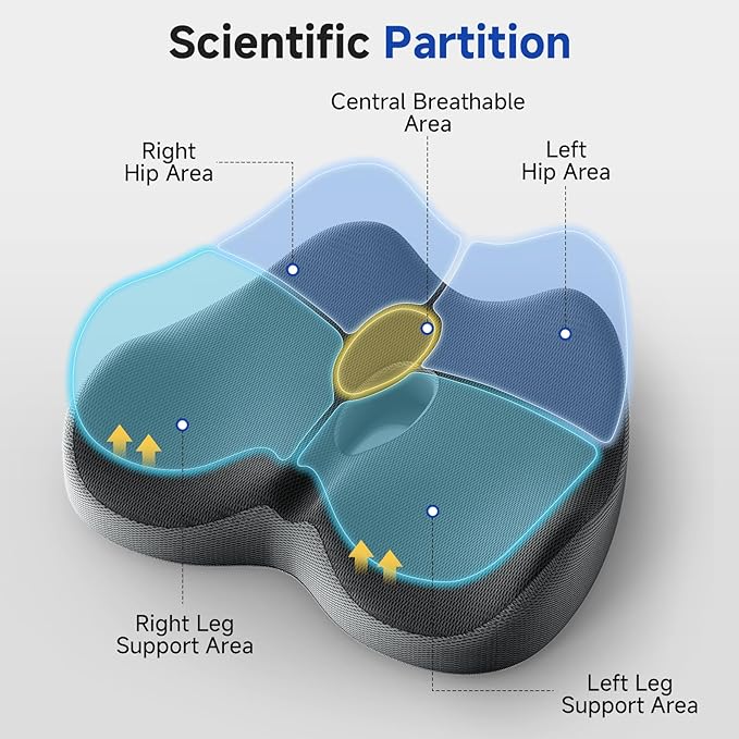 - 【Pain Relief for Sciatica】The memory foam construction helps alleviate pressure on the sciatic nerve, making it an ideal solution for those suffering from sciatica and tailbone pain.