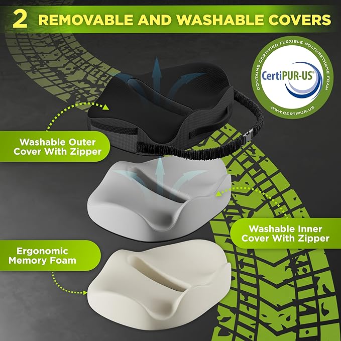 - ๐งตใ๐๐จ๐ฎ๐ ๐ก ๐๐ง๐จ๐ฎ๐ ๐ก ๐๐จ๐ซ ๐๐จ๐ง๐ ๐๐ญ๐ซ๐๐ญ๐๐ก๐๐ฌใ- Truck driver seat cushion includes 2 removable & washable covers, non-skid base, and adjustable straps for a secure fit. Crafted to withstand wear & tear of long hauls.
