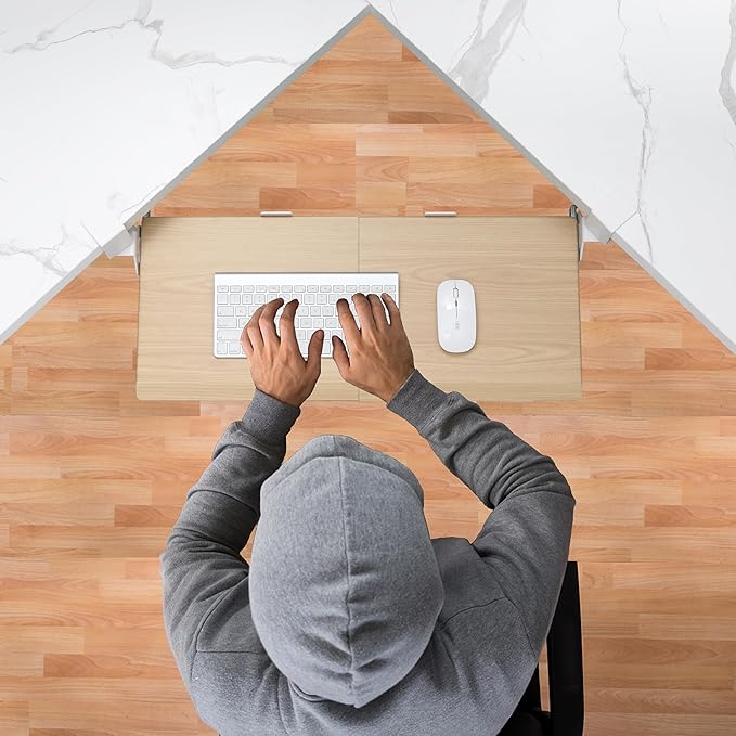 - ERGONOMIC KEYBOARD TRAY: It’s essential to have the right posture to protect your wrist, arms, neck, and shoulders when you’re at your desk. An under desk keyboard tray promotes an optimal typing position. It ensures you sit safely and can protect against neck and shoulder pain, wrist strain, and even RSI
