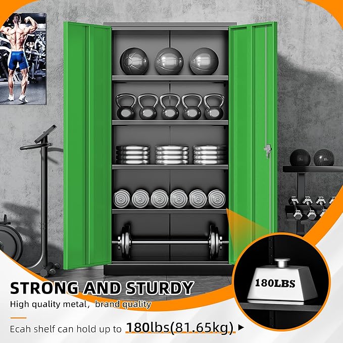 - 『Multi-scene』: Black green metal storage cabinet with locking doors is perfect for storing large quantities of items, this large steel storage cabinet adds extra space to any room and can be used in home office, garage, basement, etc.
