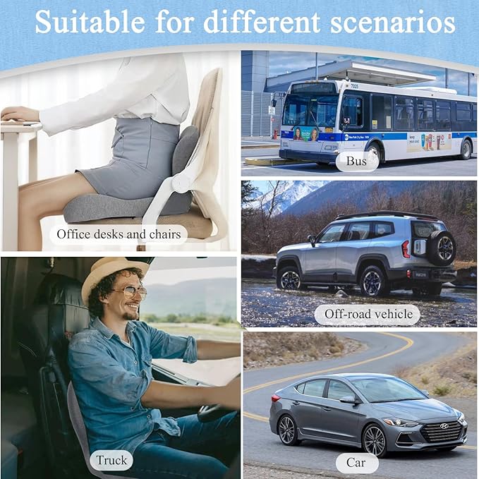 - 【 Upgrade Ergonomic Design 】Long-term driving can lead to back or leg pain. The unique ergonomic and orthopedic design of our seat cushions can help relieve sciatica, pelvic, cheekbone or tailbone pain while driving. Effectively reduces leg pain, fatigue and numbness, making your driving more comfortable.