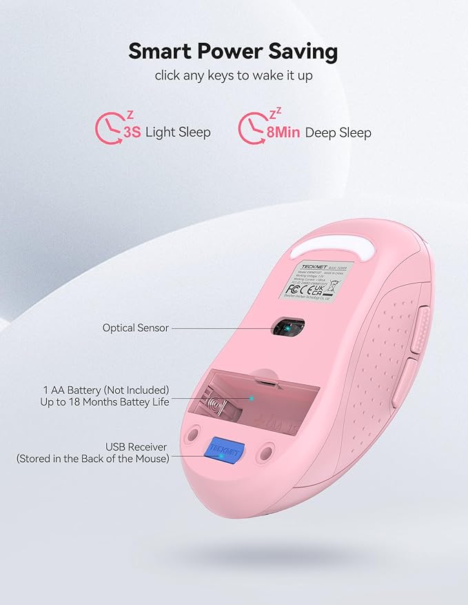 - Long Battery Life & Extremely Low Power Consumption: The silent mouse has an 18-month long battery life (battery not included), with an auto power-off function to save power, the silent mouse will enter sleep mode in a few minutes of inactivity. Press any button to wake it up. Note: The wireless mouse for laptop is powered by 1x AA batteries (not included).