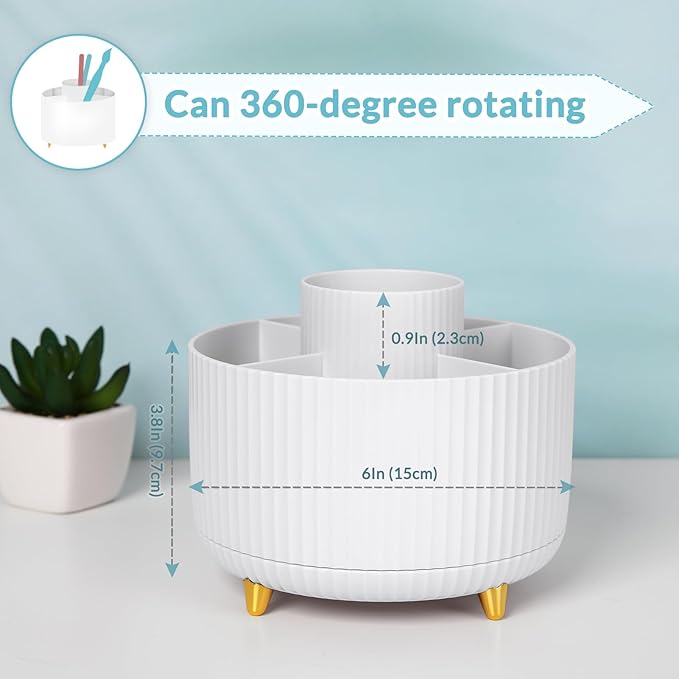 SKYDUE 360 Rotating Organizer - Dual-Purpose Pen & Pencil Holder with 5 Slots, Suitable for Office, School, or Home (White)