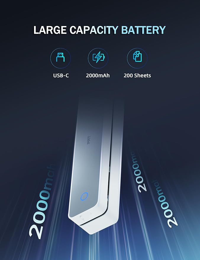 - Durable and long-lasting battery: The travel printer comes with a built-in 2000mAh battery. Once fully charged, this battery can support up to 4 hours of continuous printing, enabling the printer to produce up to 360 sheets of paper. The 300 dpi printer is suitable for home, school, office and vehicles.