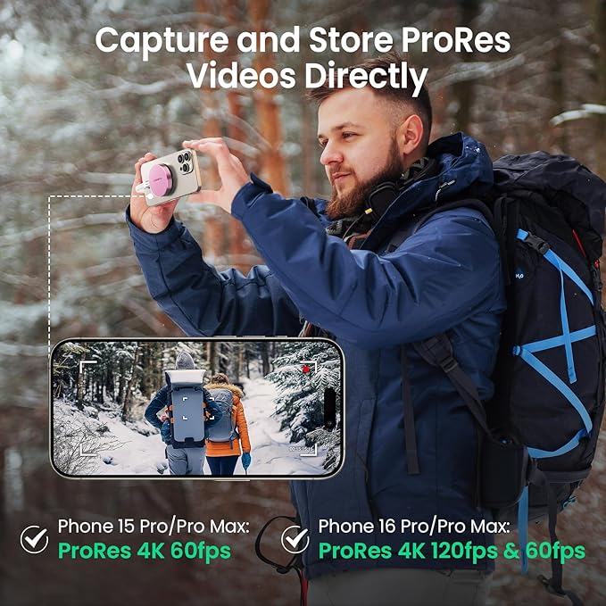 - Capture and Store ProRes Videos Directly: For iPhone 15 Pro/Pro Max or iPhone 16 Pro/Pro Max users, this external SSD is a game-changer. You can record 4K 60p ProRes or 4K 120p ProRes videos directly onto the drive, freeing up space on your phone and ensuring your high-res content is securely stored. It’s ideal for mobile filmmakers or photography enthusiasts looking for smooth, uninterrupted recording
