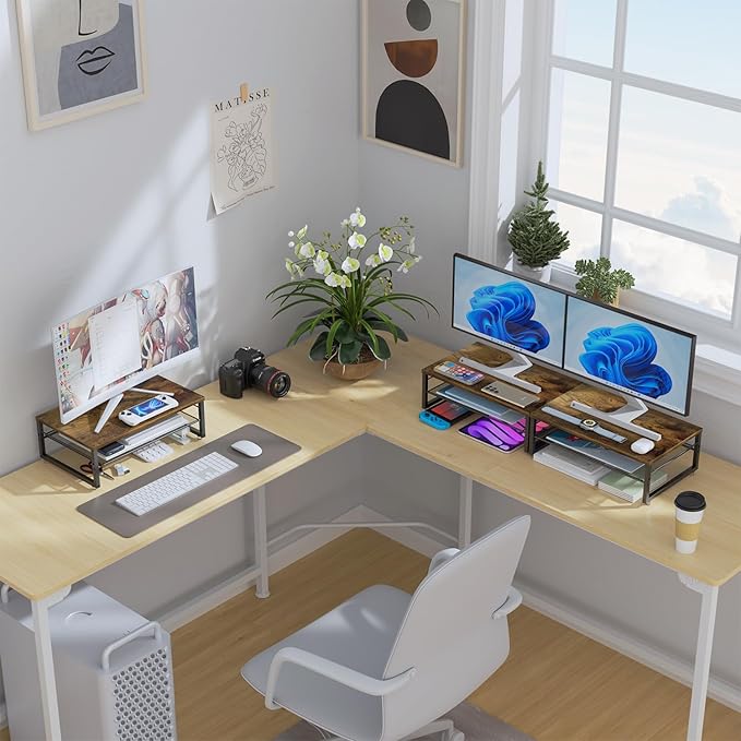 - 【Broad Compatibility】: The monitor stand riser has a universal size design that is compatible with printers, computers, Telephone and laptops. It features a ventilated design to prevent overheating. The non-slip rubber pads provide stability during use.