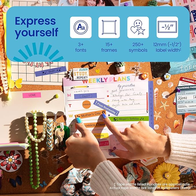 - ENDLESS EXPRESSION: Pre-loaded with 3 fonts in 7 styles including underline, italic; 15 frames, 250 symbols; free app has even more customization capability and options; prints up to two lines of text with a combined height of 9mm per label
