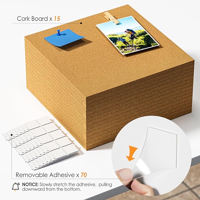 - EASY INSTALLATION: Each cork board comes with 5 removable double-sided self-adhesive stickers for effortless setup, allows you to attach the cork boards to flat wall without drilling holes, keeping your walls intact. Simply follow the provided precautions when disassembling, leaves no residue after removal