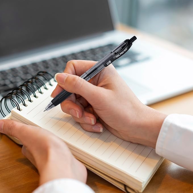 - 0.7mm Medium Point Pen: EYEYE black gel ink pens use high quality pen tips to keep writing smooth, and the blue ink quick dry. Ideal for writing, journaling, note-taking, underlining, sketching and so on.