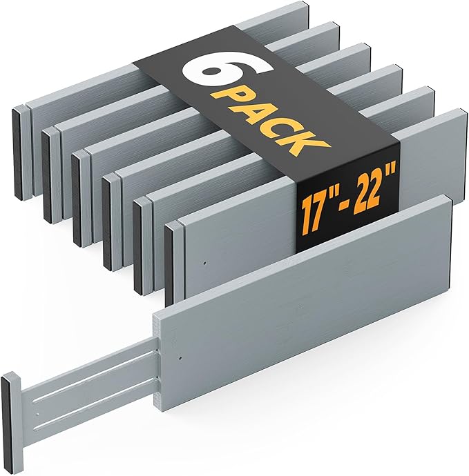 SpaceAid Bamboo Dresser Drawer Dividers 6 Pack, 4.65“ High Adjustable 17“-22” Drawer Organizers, Expandable Organization for Clothing, Clothes, Dressers, Gray