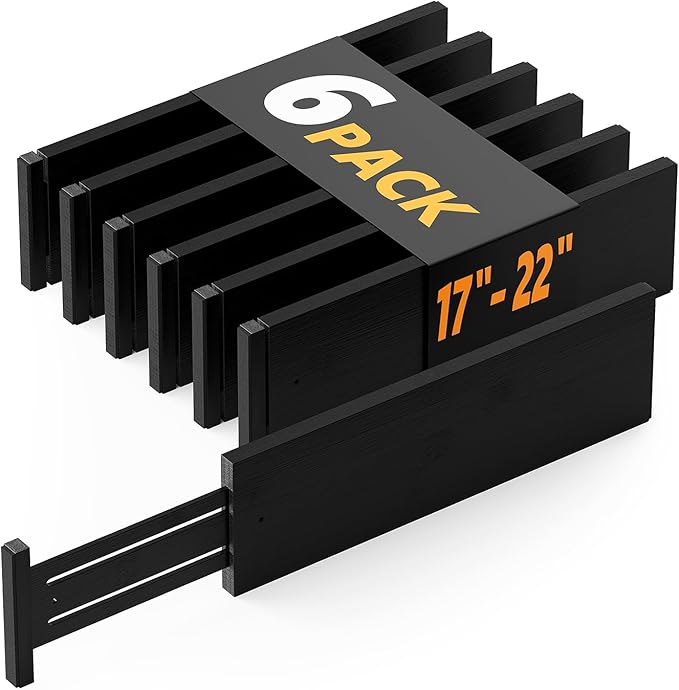 SpaceAid Bamboo Dresser Drawer Dividers 6 Pack, 4.65“ High Adjustable 17“-22” Drawer Organizers, Expandable Organization for Clothing, Clothes, Dressers, Black