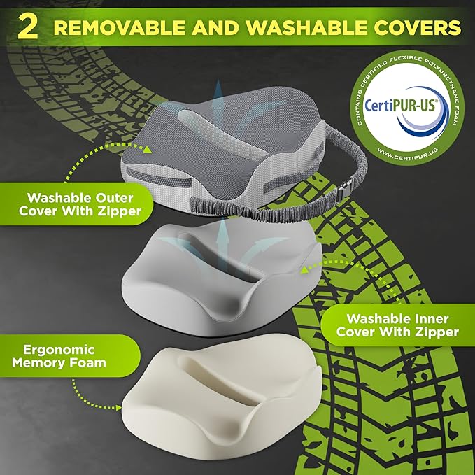 - ๐งตใ๐๐จ๐ฎ๐ ๐ก ๐๐ง๐จ๐ฎ๐ ๐ก ๐๐จ๐ซ ๐๐จ๐ง๐ ๐๐ญ๐ซ๐๐ญ๐๐ก๐๐ฌใ- Truck driver seat cushion includes 2 removable & washable covers, non-skid base, and adjustable straps for a secure fit. Crafted to withstand wear & tear of long hauls.