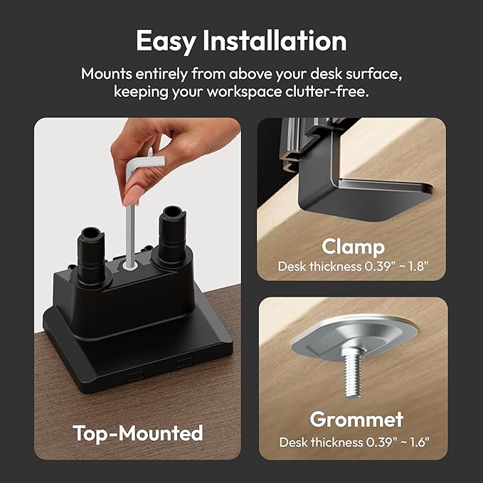 - Dual Monitor Setup - Accommodates two monitors up to 32 inches each and supports up to 19.8 lbs per arm. Each arm has a plate that can support 75x75mm and 100x100mm VESA mounting patterns.