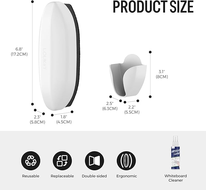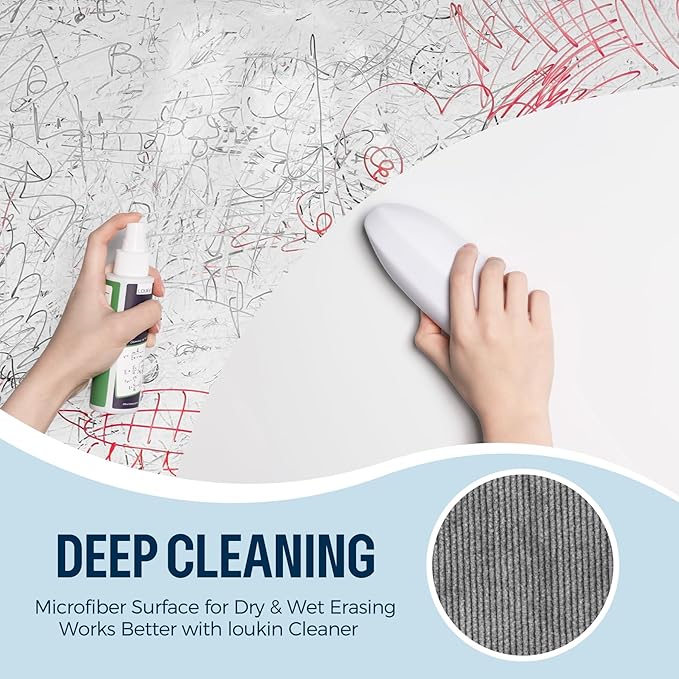 - Daily & Deep Cleaning: The reversible eraser pad offers two different surfaces. The electrostatic fabric side delivers superior friction, perfect for daily dry erasing. The microfiber side works for both dry and wet erasing, and pairs perfectly with Loukin cleaner for deep cleaning